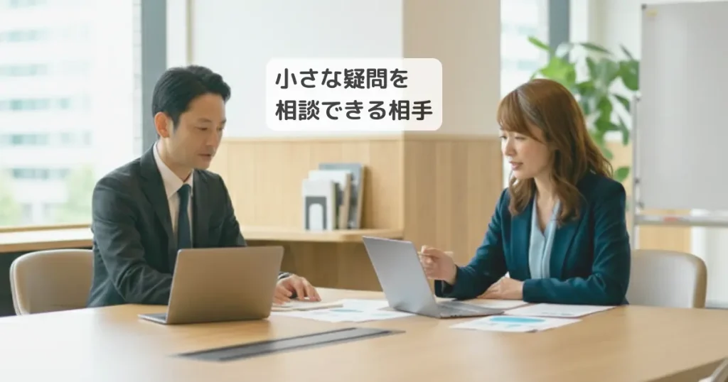 といった小さな疑問を相談できる相手がいるだけでも、会社の安心感は大きく変わります。