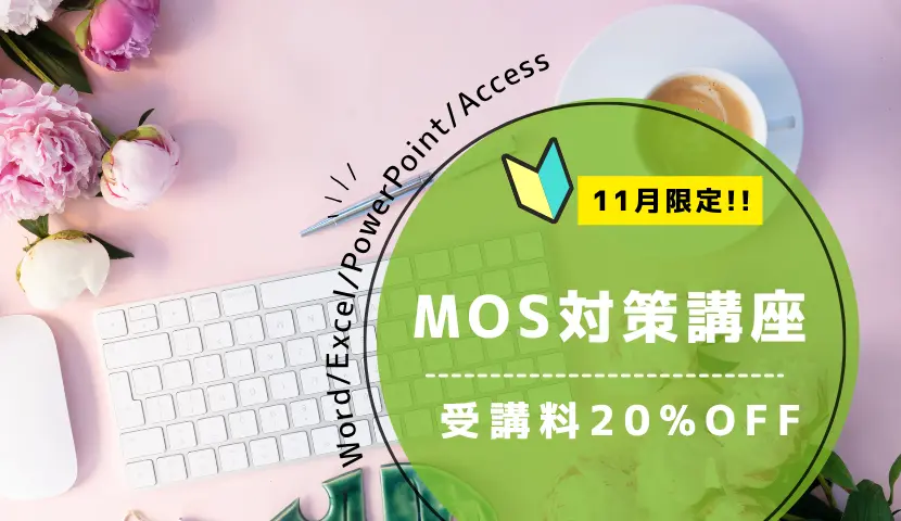 そんな方にとって今月はチャンス☆MOS対策全講座の受講料が20%OFFになりますよ~