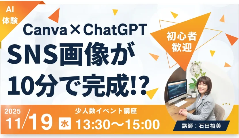そんな方のために、AI(ChatGPT)とCanvaを使ったSNS投稿作成体験講座を開講します!